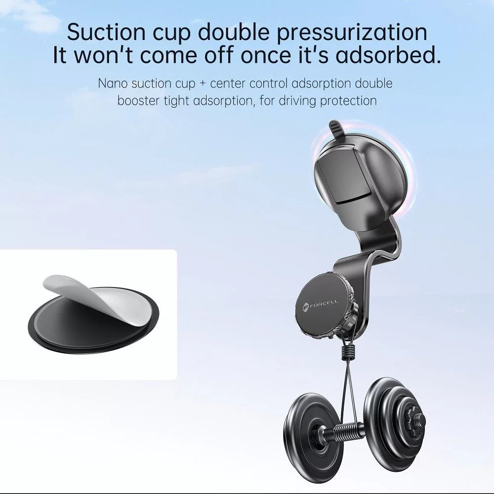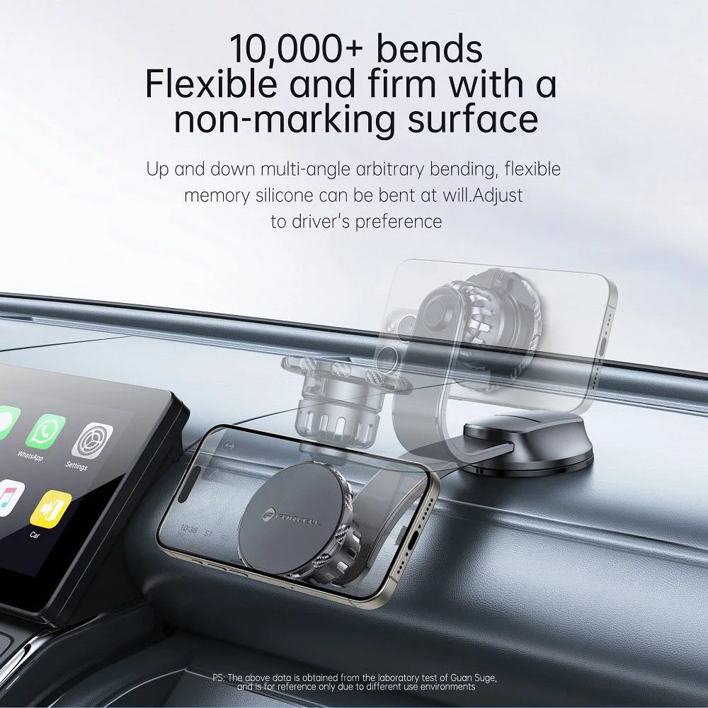 Az erős mágnesekkel felszerelt Forcell autós tartó stabilan tartja okostelefonját még dinamikus vezetés közben is. A termékhez két fémlemez tartozik, amelyek lehetővé teszik a telefon mágneses rögzítését.