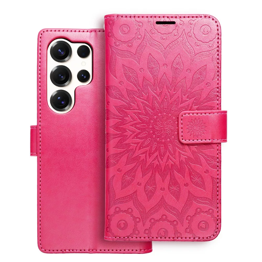 Samsung Galaxy S25 Ultra 5G könyvtok, fliptok, telefon tok, oldalra nyíló tok, mágneszáras, bankkártyatartós, mandala mintás, magenta, Forcell Mezzo részletes leírása