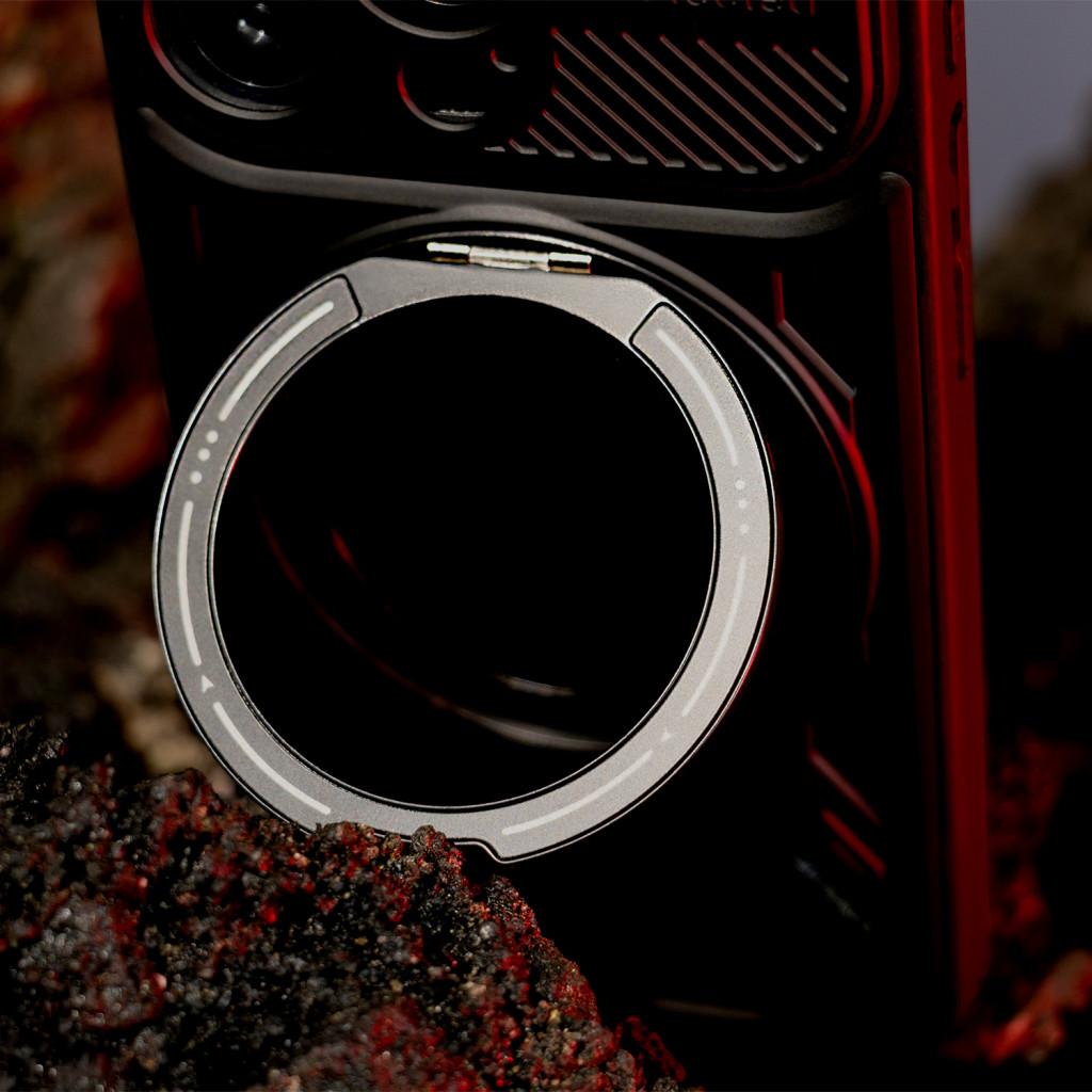 A hátlapon található beépített fém gyűrű több funkciót is ellát:
