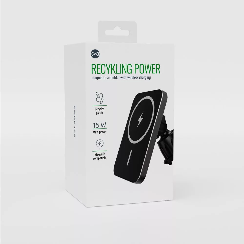 A Forever MACH-100 modern, praktikus és megbízható autós tartó, amely erős mágneses rögzítéssel tartja stabilan a készüléket, miközben 15W teljesítményű vezeték nélküli gyorstöltést biztosít. MagSafe kompatibilis kialakításának köszönhetően tökéletesen illeszkedik MagSafe-es iPhone modellekhez, de Qi töltést támogató készülékekkel is használható.
