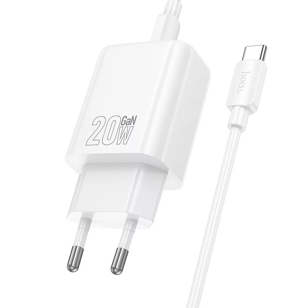 Hoco N61 20W PD + QC3.0 gyorstöltő szett – hálózati adapter USB-C és USB-A porttal + 1m USB-C → USB-C kábel, fehér