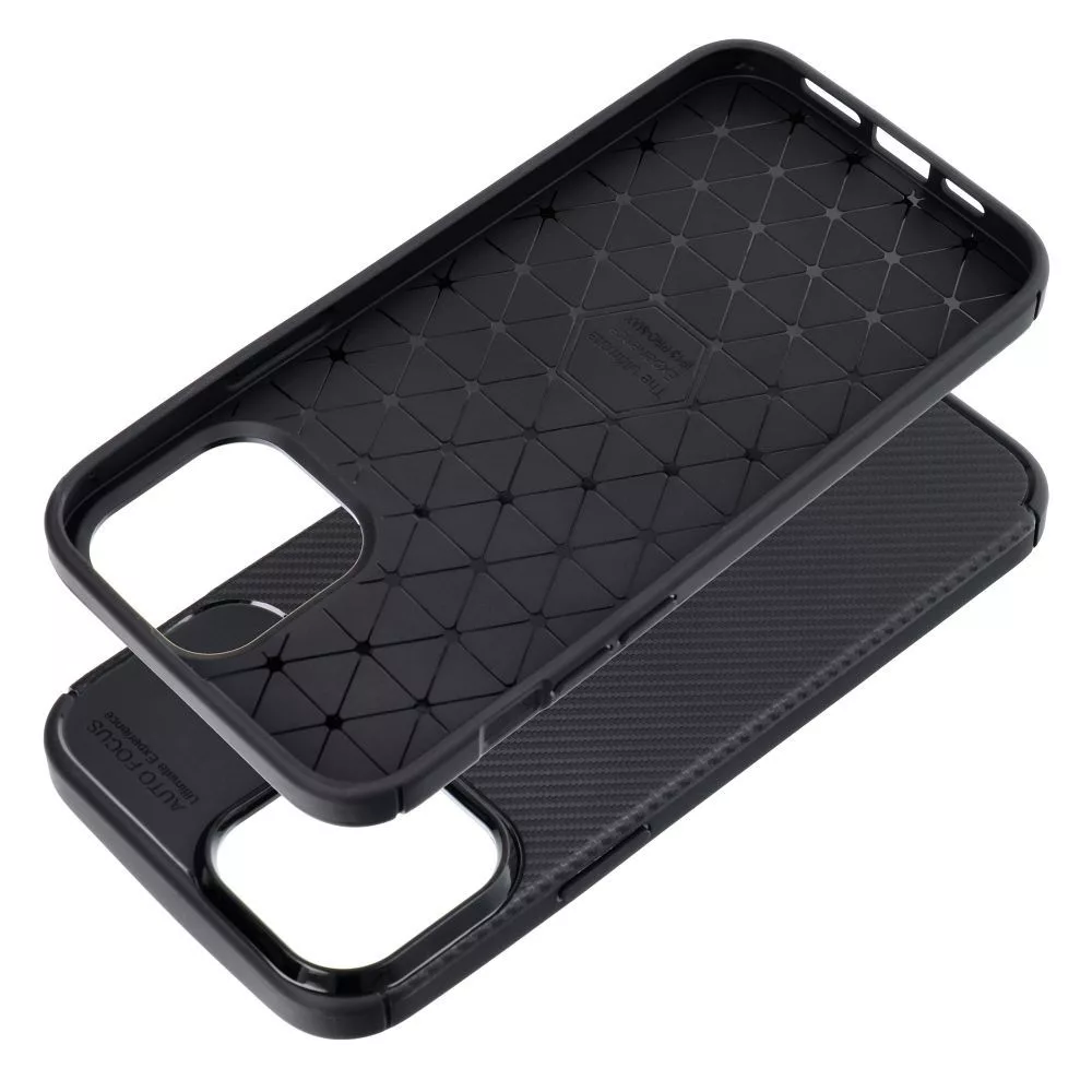 iPhone 13 Pro Max szilikon tok, hátlaptok, telefon tok, karbon mintás, fekete, Carbon Premium