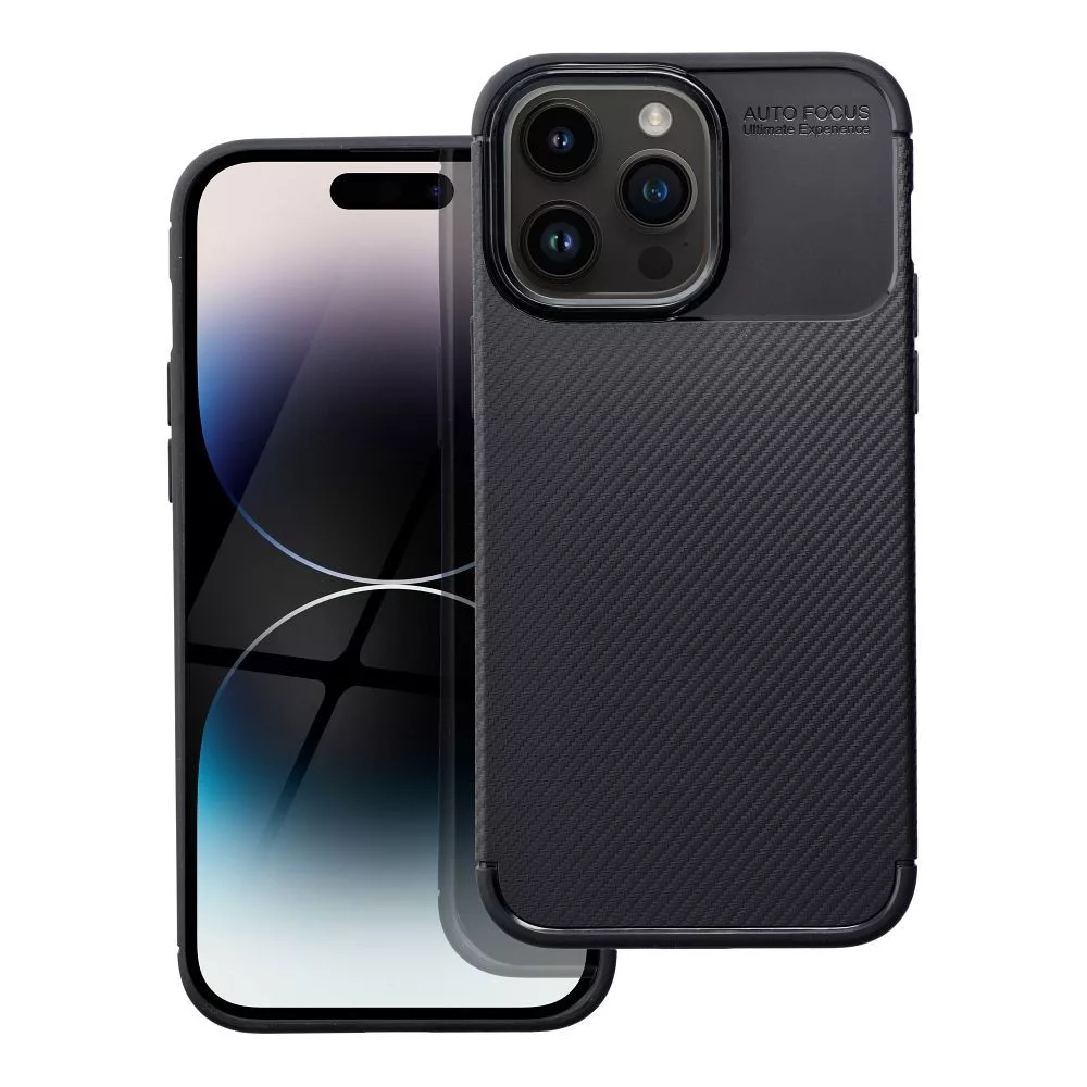iPhone 14 Pro Max szilikon tok, hátlaptok, telefon tok, karbon mintás, fekete, Carbon Premium