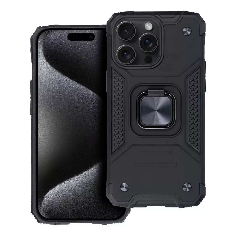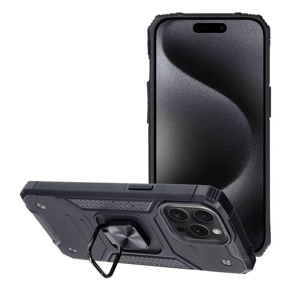 iPhone 15 Pro Max hátlap tok, telefon tok, kitámasztható, mágneses, ütésálló, fekete, Nitro