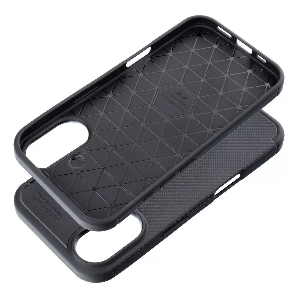 iPhone 16 szilikon tok, hátlaptok, telefon tok, karbon mintás, fekete, Carbon Premium részletes leírása