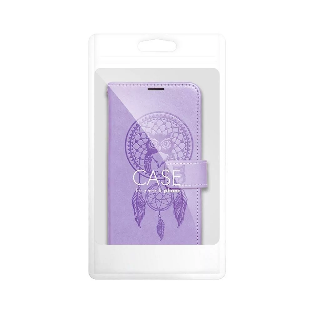 iPhone 14 Plus könyvtok, fliptok, telefon tok, mágneszáras, bankkártyatartós, álomfogó mintás, lila, Forcell Mezzo