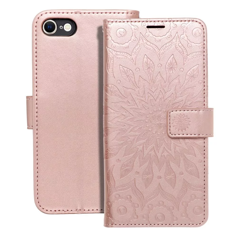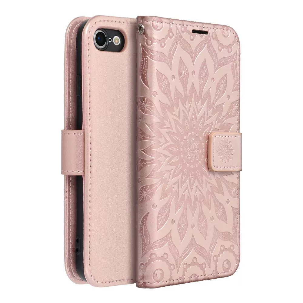 iPhone 7 / 8 / SE 2020 / SE 2022 könyvtok, fliptok, telefon tok, mágneszáras, bankkártyatartós, mandala mintás, rose gold, Forcell Mezzo