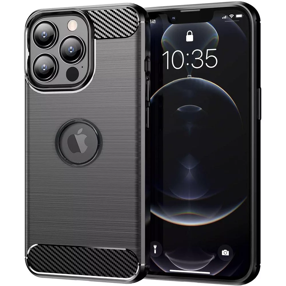 iPhone 13 Pro Max szilikon tok, hátlaptok, telefon tok, karbon mintás, fekete, Carbon case
