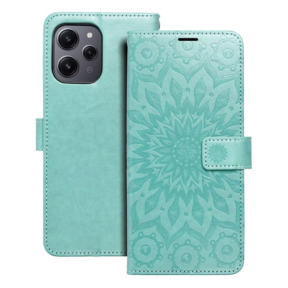 Xiaomi Redmi 12 4G / 5G könyvtok, fliptok, telefon tok, mágneszáras, bankkártyatartós, mandala mintás, zöld, Forcell Mezzo részletes leírása