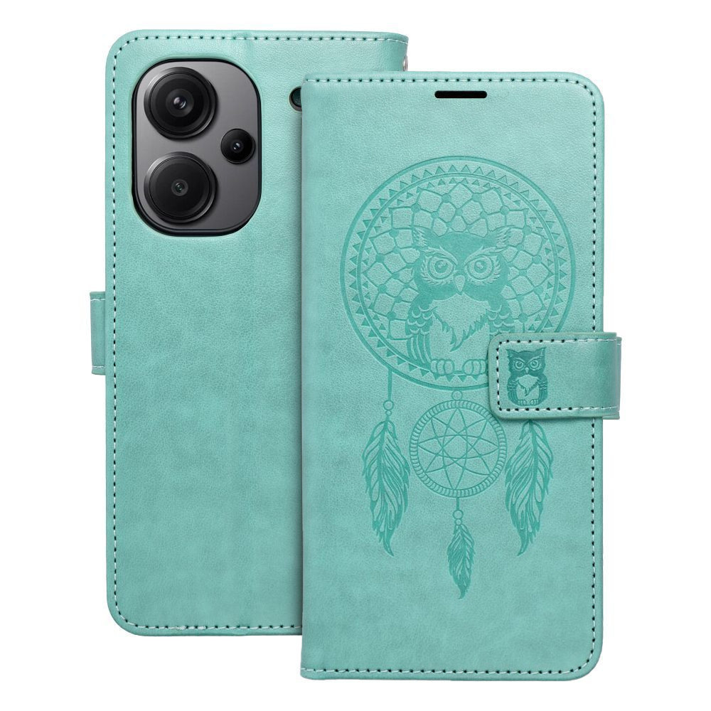 Xiaomi Redmi Note 13 Pro+ 5G könyvtok, fliptok, telefon tok, mágneszáras, bankkártyatartós, álomfogó mintás, zöld, Forcell Mezzo részletes leírása