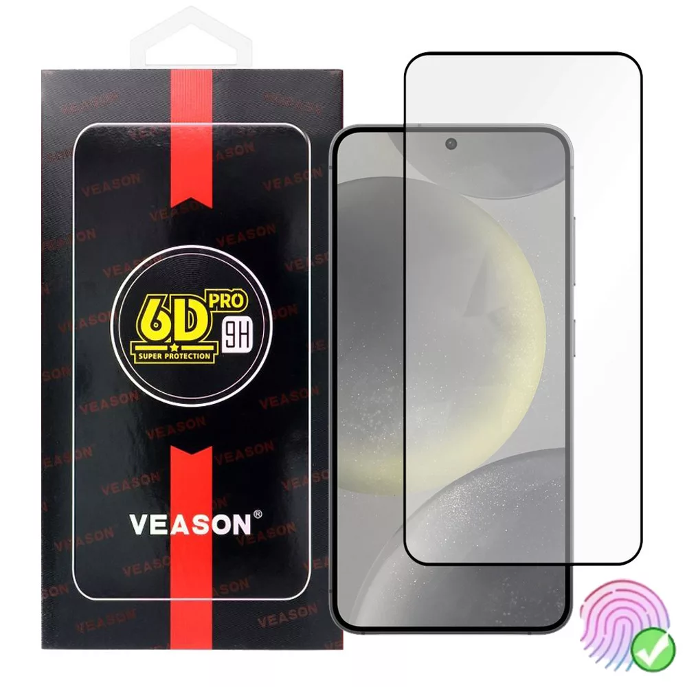 Samsung Galaxy S25 5G üvegfólia, tempered glass, előlapi, edzett, hajlított, fekete kerettel, Veason 6D Pro , ujjlenyomat-olvasó kompatibilis