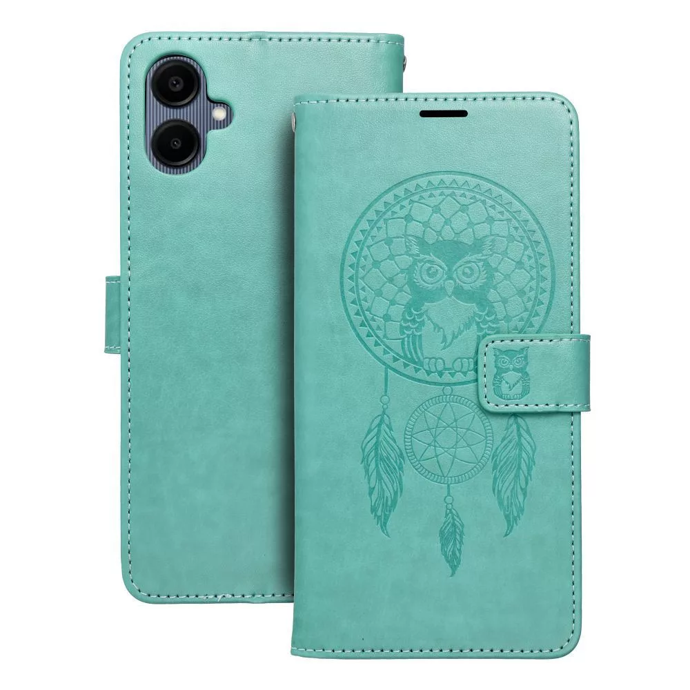 Samsung Galaxy A06 könyvtok, fliptok, telefon tok, mágneszáras, bankkártyatartós, álomfogó mintás, zöld, Forcell Mezzo