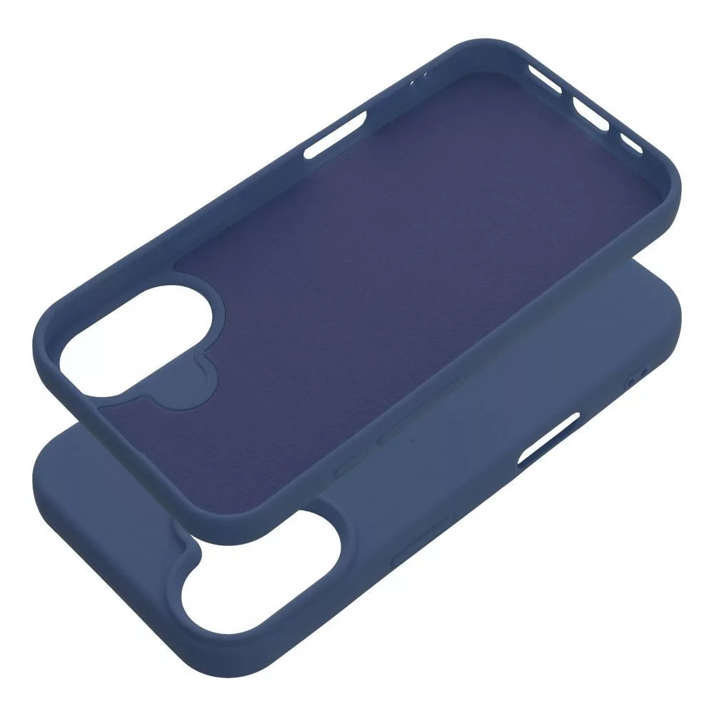 iPhone 17 szilikon tok, hátlaptok, telefon tok, velúr belsővel, matt, kék, Silicone