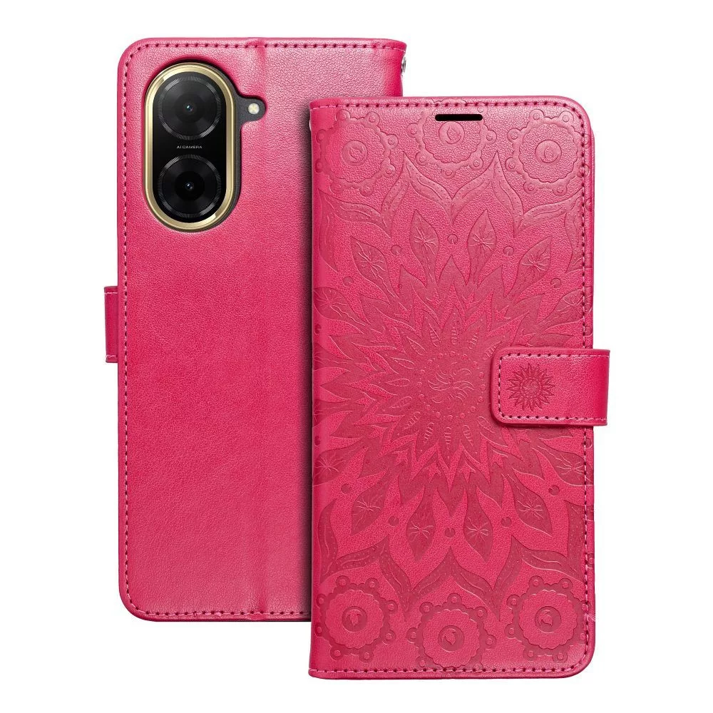 Xiaomi Redmi A5 4G könyvtok, fliptok, telefon tok, mágneszáras, bankkártyatartós, mandala mintás, magenta, Forcell Mezzo