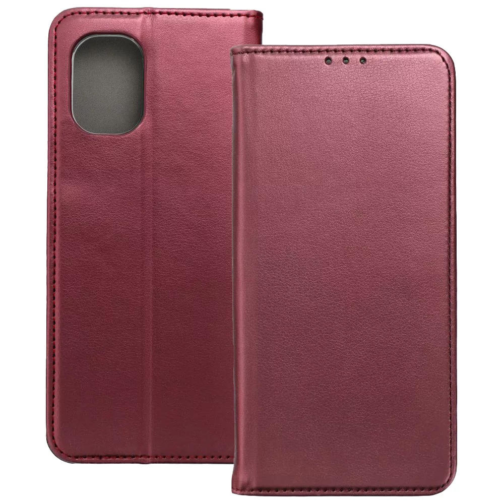 Motorola Moto G55 5G könyvtok, fliptok, telefon tok, mágneszáras, bankkártyatartós, bordó, Smart Magnetic