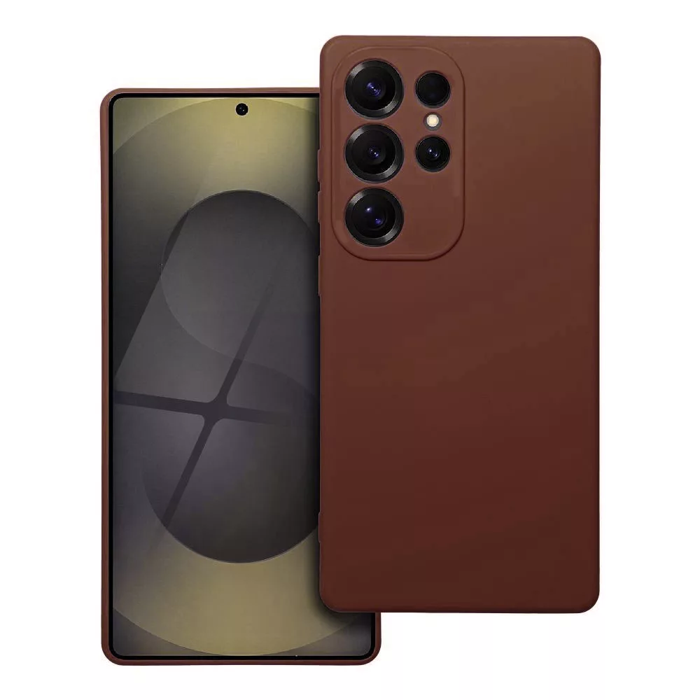 Samsung Galaxy S25 Ultra 5G szilikon tok, hátlaptok, telefon tok, velúr belsővel, matt, barna, Silicon
