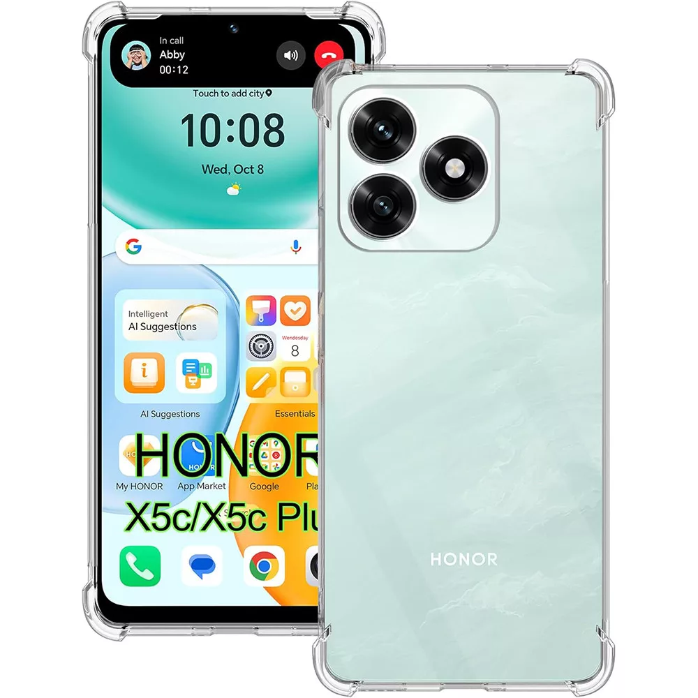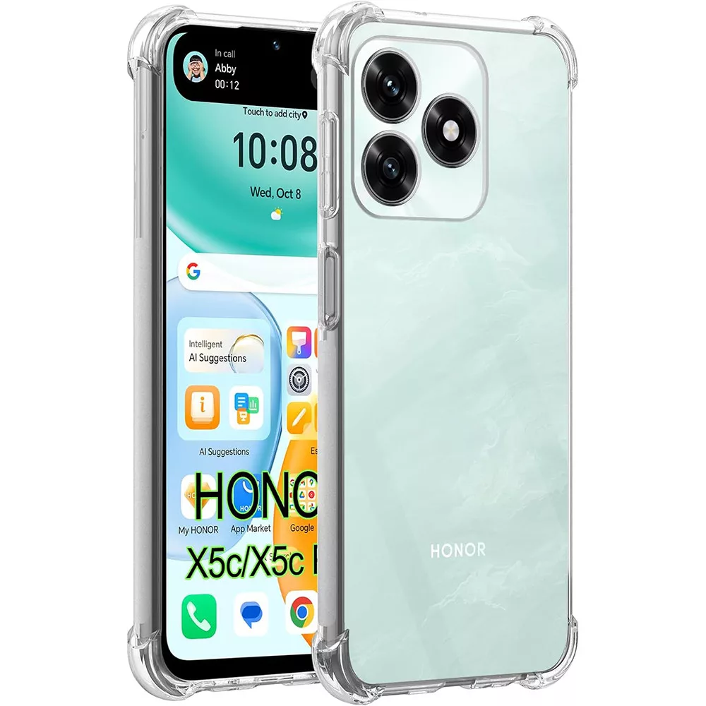 Honor X5c Plus szilikon tok, hátlaptok, telefon tok, erősített sarkokkal, átlátszó, Anti Shock, 1.5mm