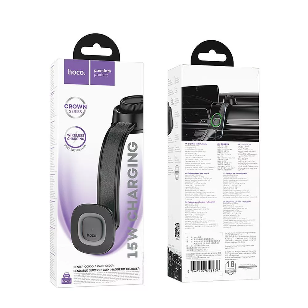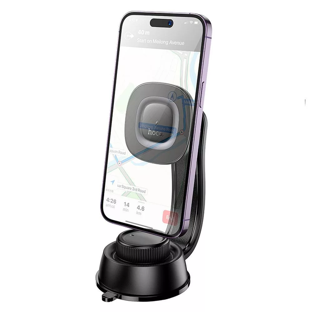 Autós mobiltelefon tartó, műszerfalra helyezhető, MagSafe kompatibilis, mágneses, vezeték nélküli töltő, 15W, fekete, Hoco HW31 részletes leírása